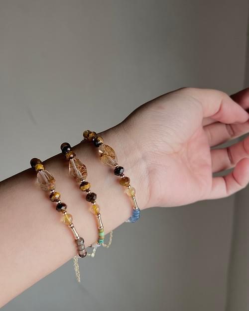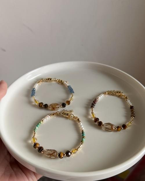 綠|綠松石、金髮晶、銅髮晶、虎眼石、珍珠。