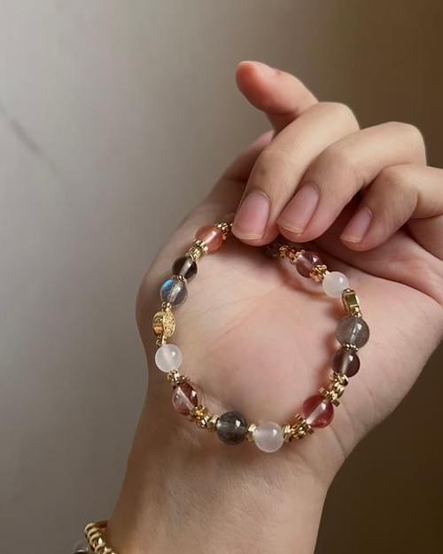 配珠:紅膠花、拉長石、茶晶、瑪瑙。