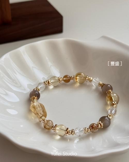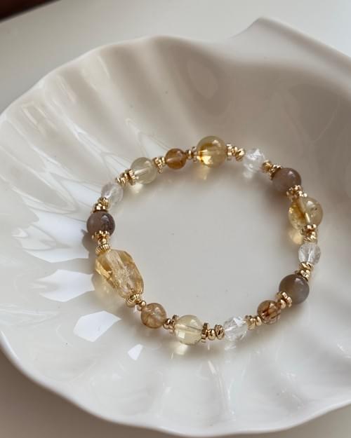 礦材:黃水晶、白水晶、太陽骨幹、銅髮晶。