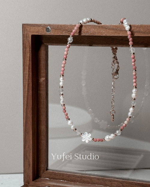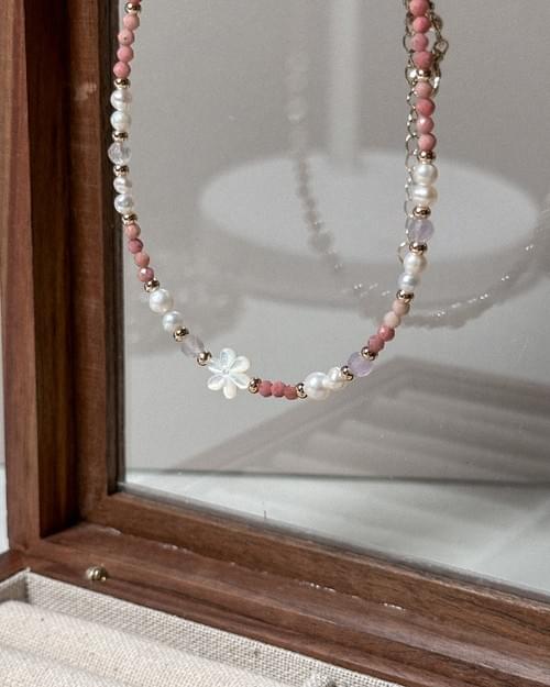 材質|薔薇石、紫鋰輝、白貝、珍珠。