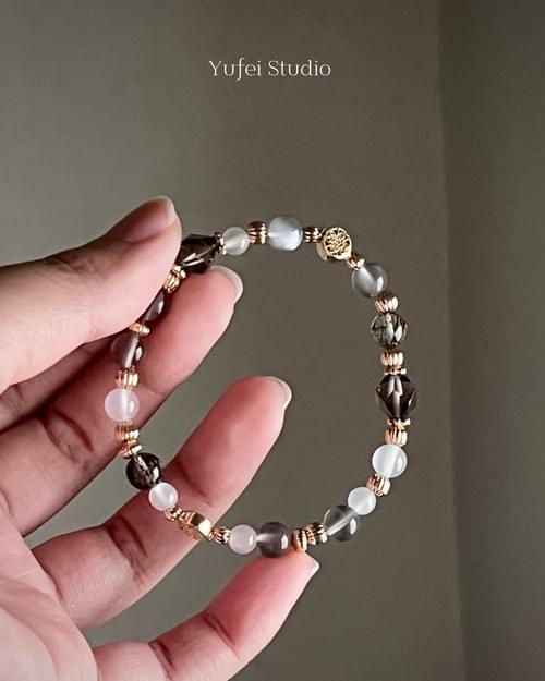 配珠:黑金超七、銀月光、茶晶、瑪瑙、月光石。