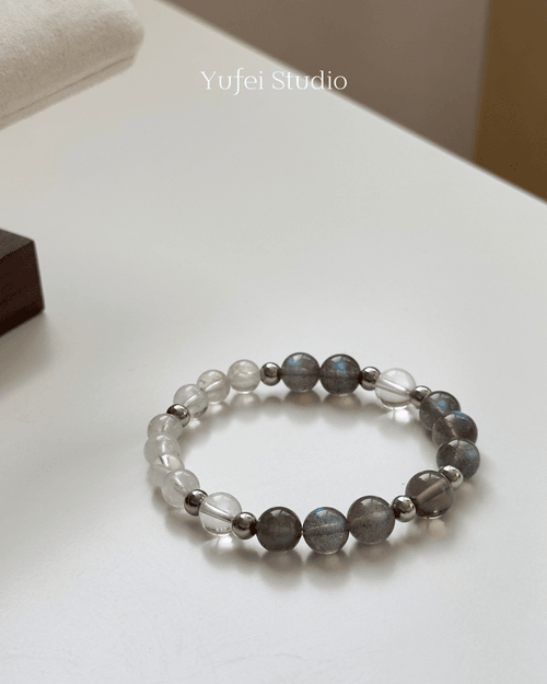 材質|雪花幽靈、茶晶、白水晶、拉長石。